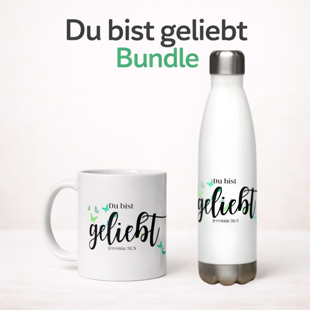 Ob beim ersten Kaffee am Morgen oder unterwegs mit Wasser oder Tee – dieser liebevoll gestaltete Alltagsbegleiter erinnert dich an deine Identität in Christus. Du bist nicht übersehen. Nicht vergessen. Du bist geliebt. Punkt. Die Tasse ist mikrowellen- und spülmaschinengeeignet, die Flasche hält dein Getränk stundenlang warm oder kalt – perfekt für lange Tage, stille Zeiten oder als Geschenk für deine beste Freundin.