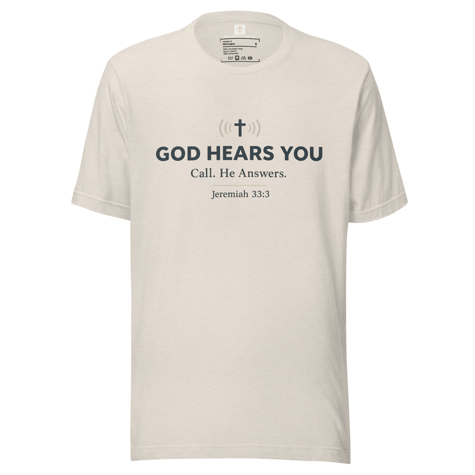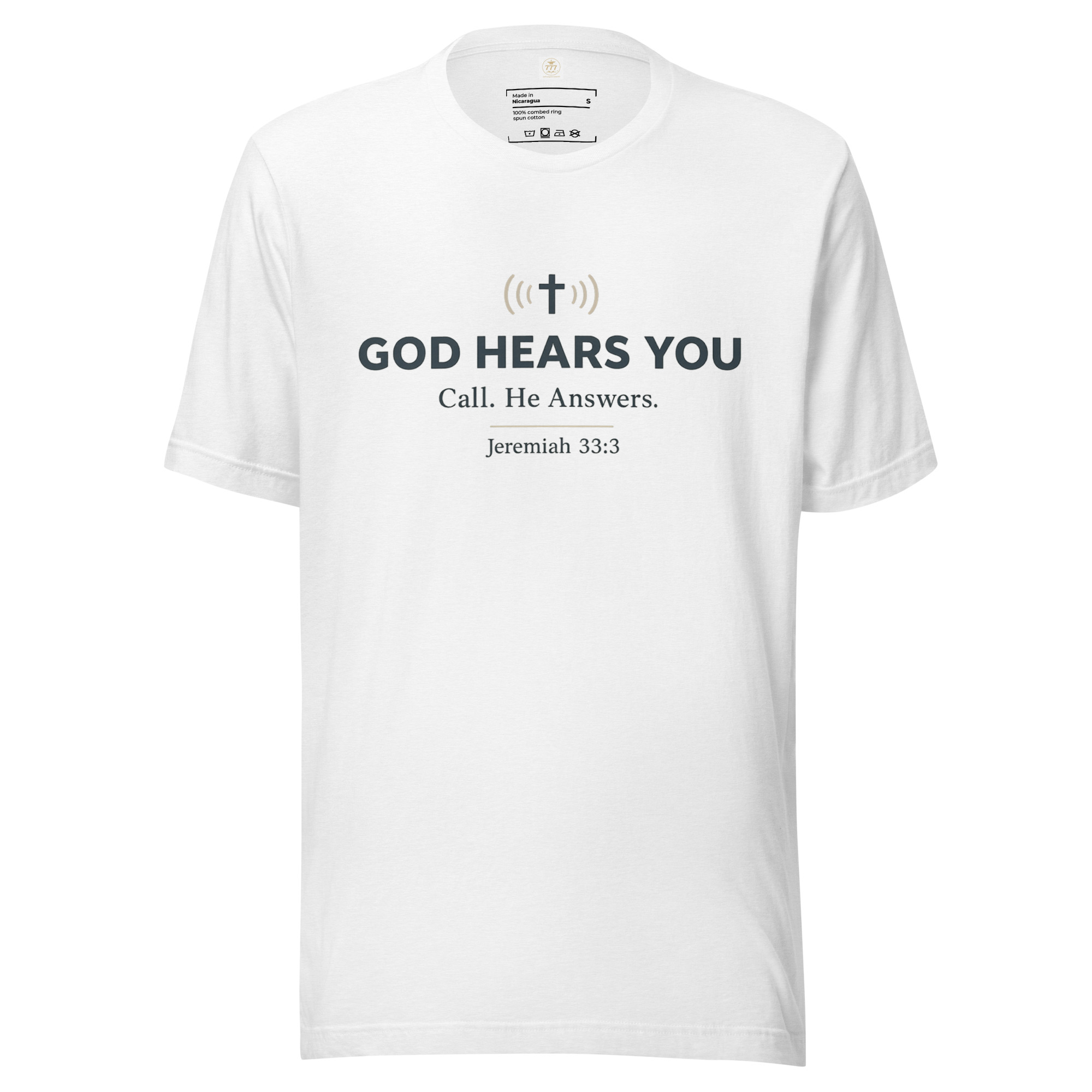 Kurz gesagt. Dieses christliche Unisex T-Shirt „God Hears You“ auf Bella + Canvas 3001 ist für Menschen, die sich im Alltag daran erinnern wollen, dass Gott ihr Gebet hört und antwortet.
