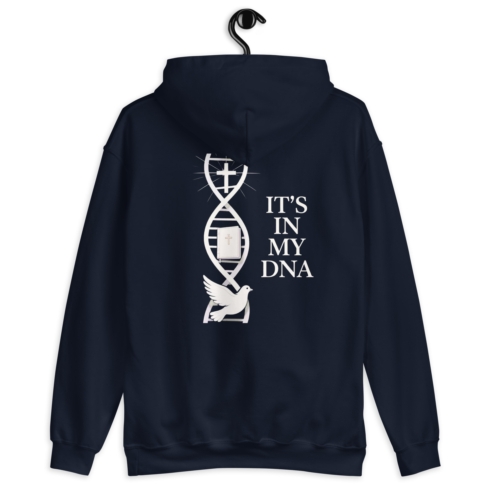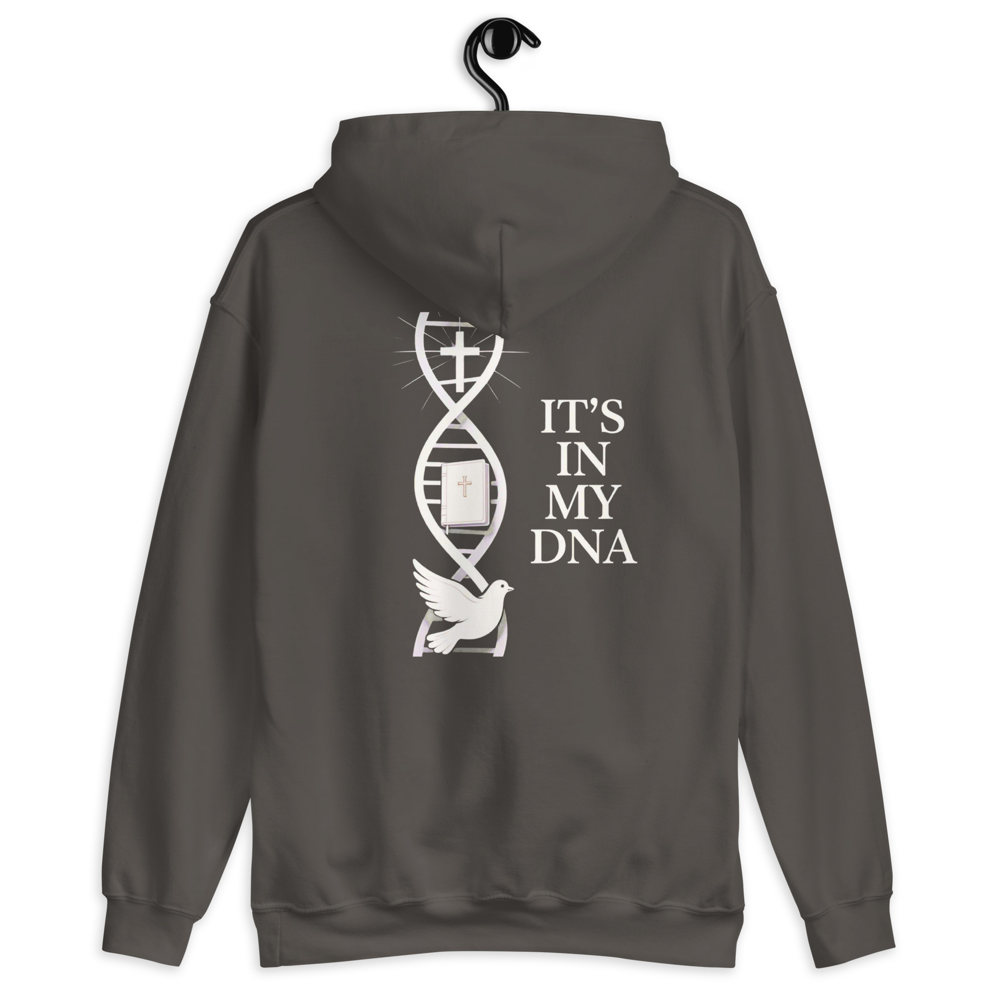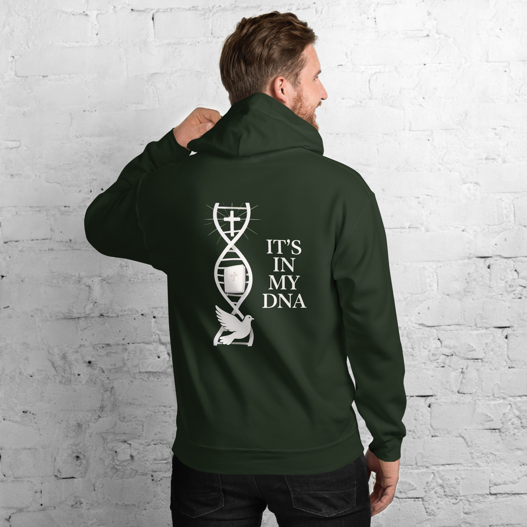 Der kraftvolle Rückenprint mit Kreuz, DNA-Strang und Taube macht sichtbar, was geistlich längst wahr ist: Du bist von Gott neu geschaffen. Nicht nur äußerlich verändert – sondern innerlich neu geboren (Johannes 3,3). Dieser Hoodie erinnert dich daran, wer du in Christus bist.