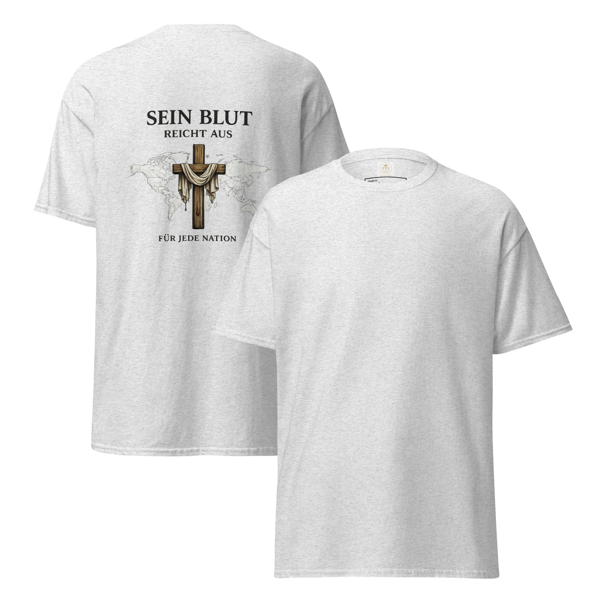 Kurz gesagt. Dieses christliche Unisex T-Shirt von Gildan mit dem Rückenprint „Sein Blut reicht aus für jede Nation“ ist für Menschen, die die rettende Botschaft von Jesus sichtbar tragen und weitergeben möchten.