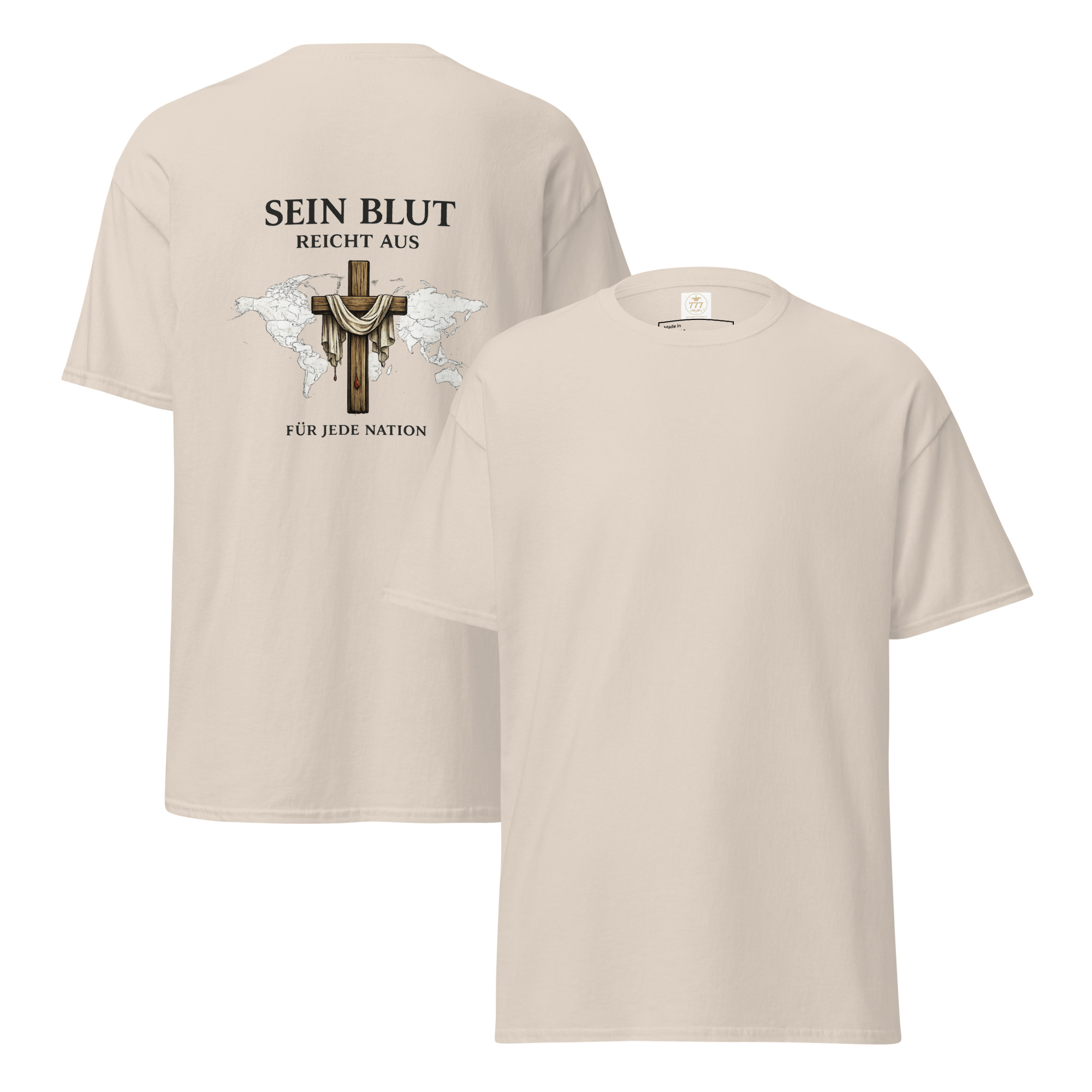 Der Print erinnert daran, dass Jesu Opfer am Kreuz für Menschen aus allen Nationen ausreicht. Er steht für Erlösung, Gnade und Hoffnung durch Jesus Christus.