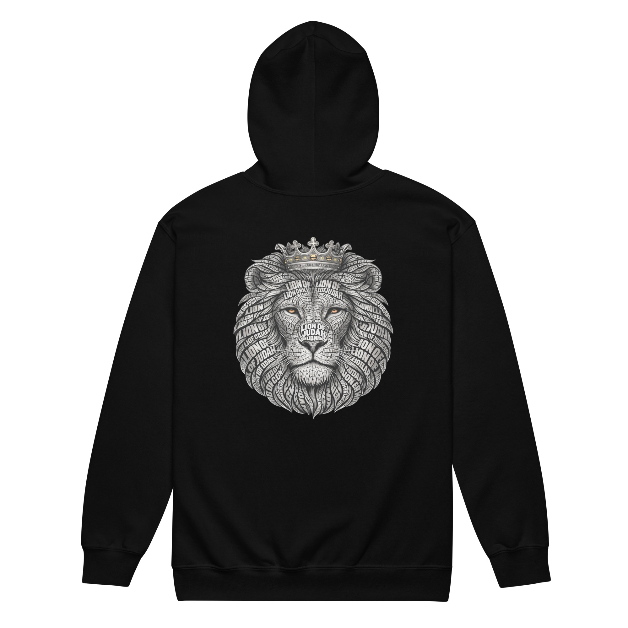Vorne schlicht und klar mit weißem Print. Hinten der majestätische Löwe mit Krone als starkes Zeichen. Dieser Hoodie verbindet Glauben mit sichtbarer Identität.